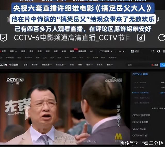 而央视六套直接直播许绍雄电影《搞定岳父大人》,他在片中饰演的“搞笑岳父”给观众带来了无数欢乐。 有四百多万人观看直播,在评论区愿许绍雄走好。